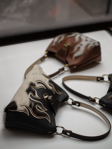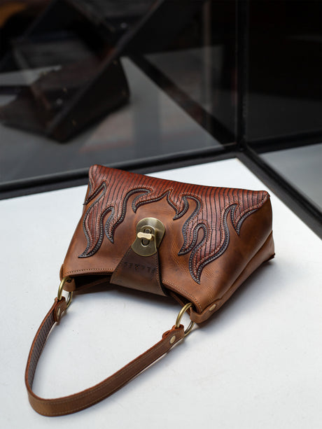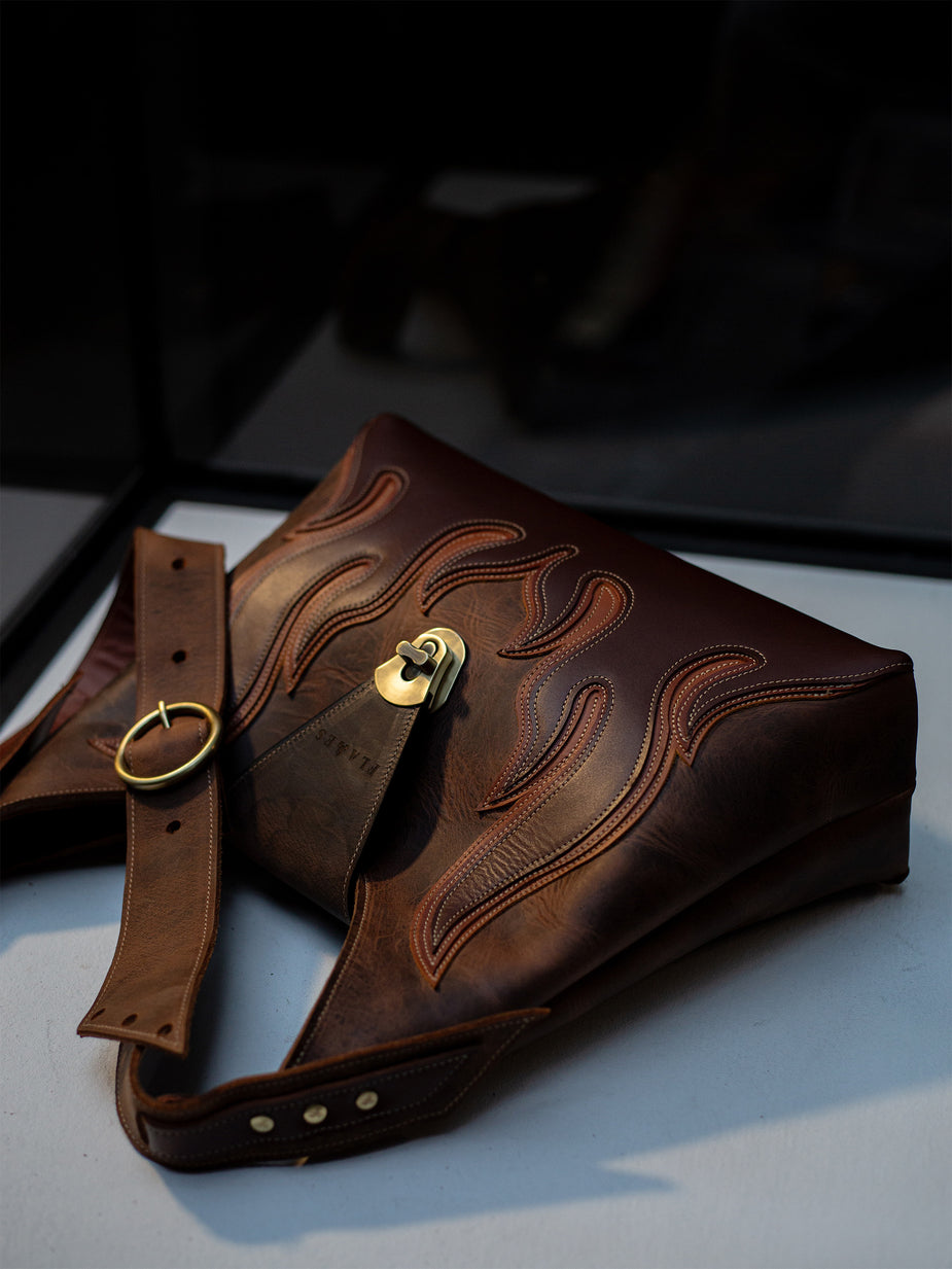 FROM SHOPPER BAGS AND HANDBAGS TO LEATHER BELTS AND WAISTCOATS, FLAMES PRODUCTS COME IN A VARIETY OF STYLES, COLORS, AND FINISHES. WHETHER YOU PREFER NATURAL LEATHER, DENIM DETAILS, OR BOLD EMBOSSED DESIGNS, THERE’S A FLAME FOR EVERYONE.