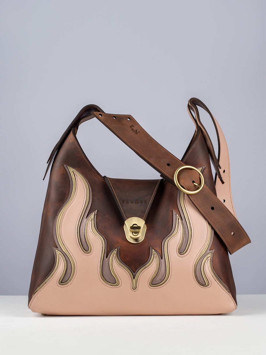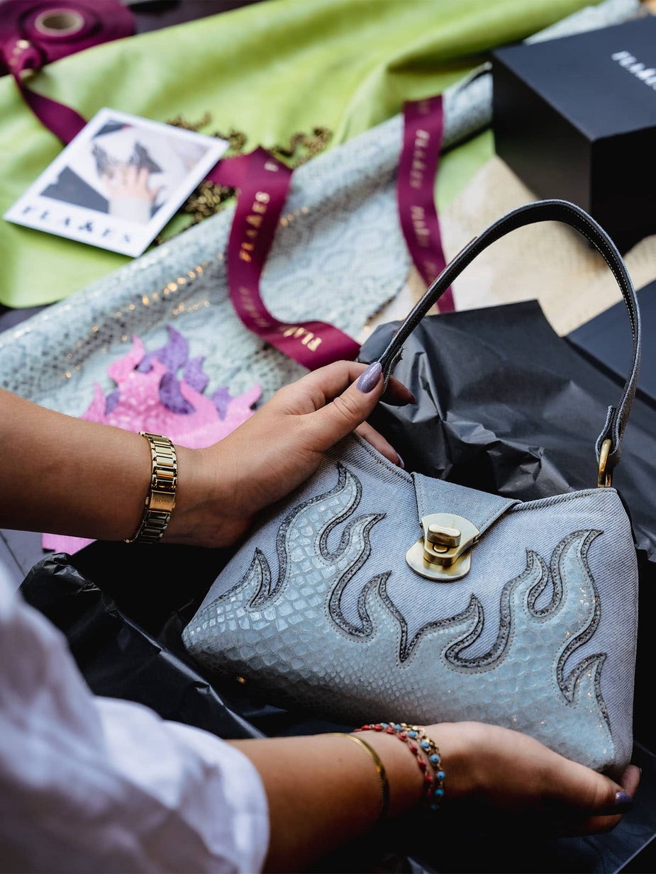 FROM SHOPPER BAGS AND HANDBAGS TO LEATHER BELTS AND WAISTCOATS, FLAMES PRODUCTS COME IN A VARIETY OF STYLES, COLORS, AND FINISHES. WHETHER YOU PREFER NATURAL LEATHER, DENIM DETAILS, OR BOLD EMBOSSED DESIGNS, THERE’S A FLAME FOR EVERYONE.