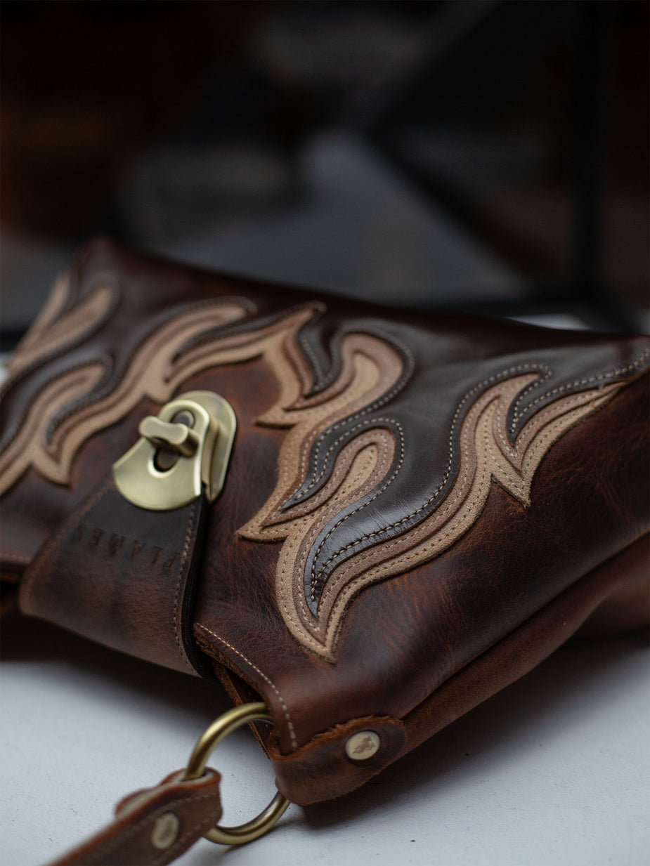 EACH FLAME BAG IS MADE FROM SUSTAINABLE DEADSTOCK LEATHER, LIMITED TO SMALL BATCHES ONLY